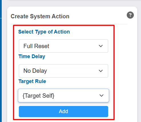 In the Select Type of Action dropdown, select Reset Accumulator.
