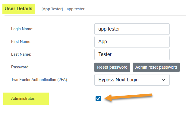 - Check the Administrator checkbox.